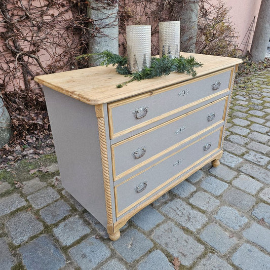alte antike Kommode mit Drechselarbeiten in graubraun Platte Holz natur - 289