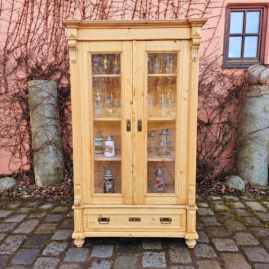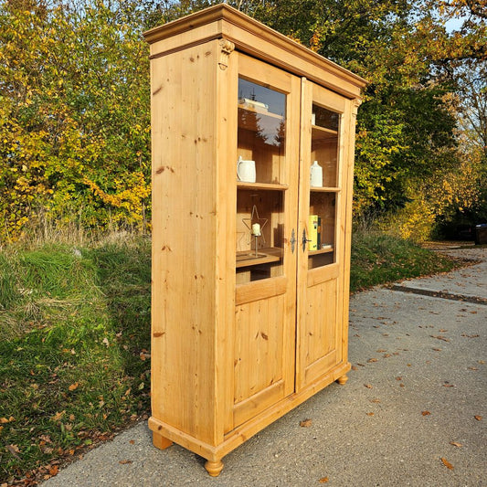 2-türige Glas-Vitrine Glasschrank Bauernschrank aus Fichtenholz, gewachst - 276
