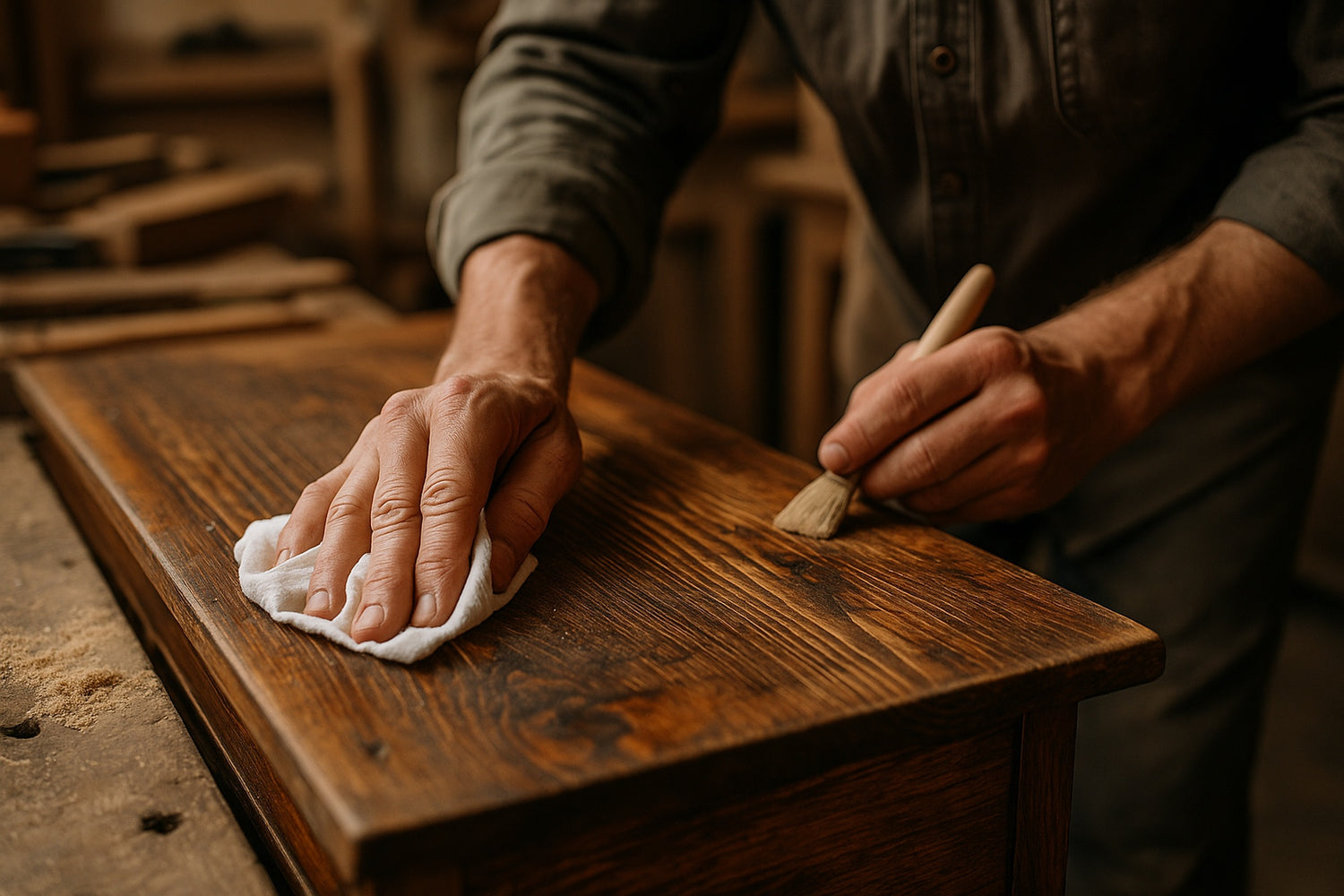 Wir setzen auf hochwertige Öle, Wachse, Lacke und Beizen. Alles wird sorgfältig abgestimmt, damit Holzstruktur, Farbe und Charakter des Möbelstücks optimal erhalten bleiben.