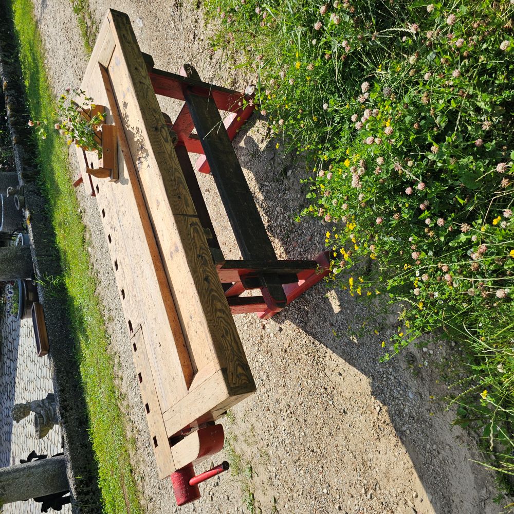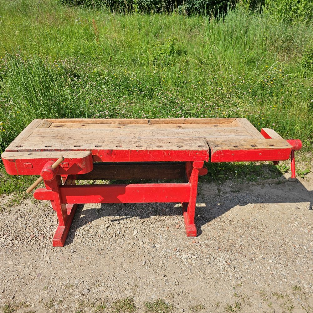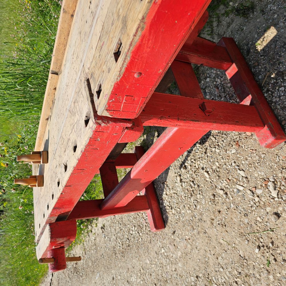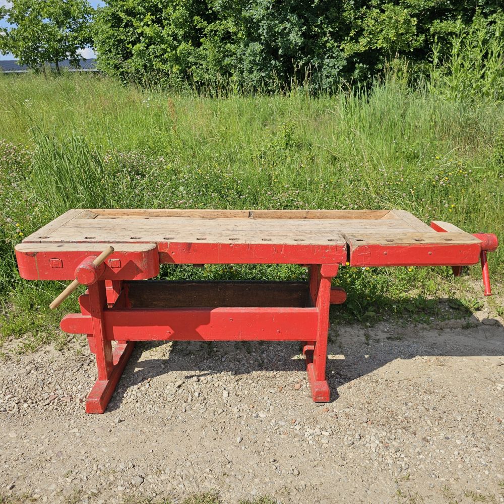 Rote alte antike urige rustikale Hobelbank Werkbank - 272