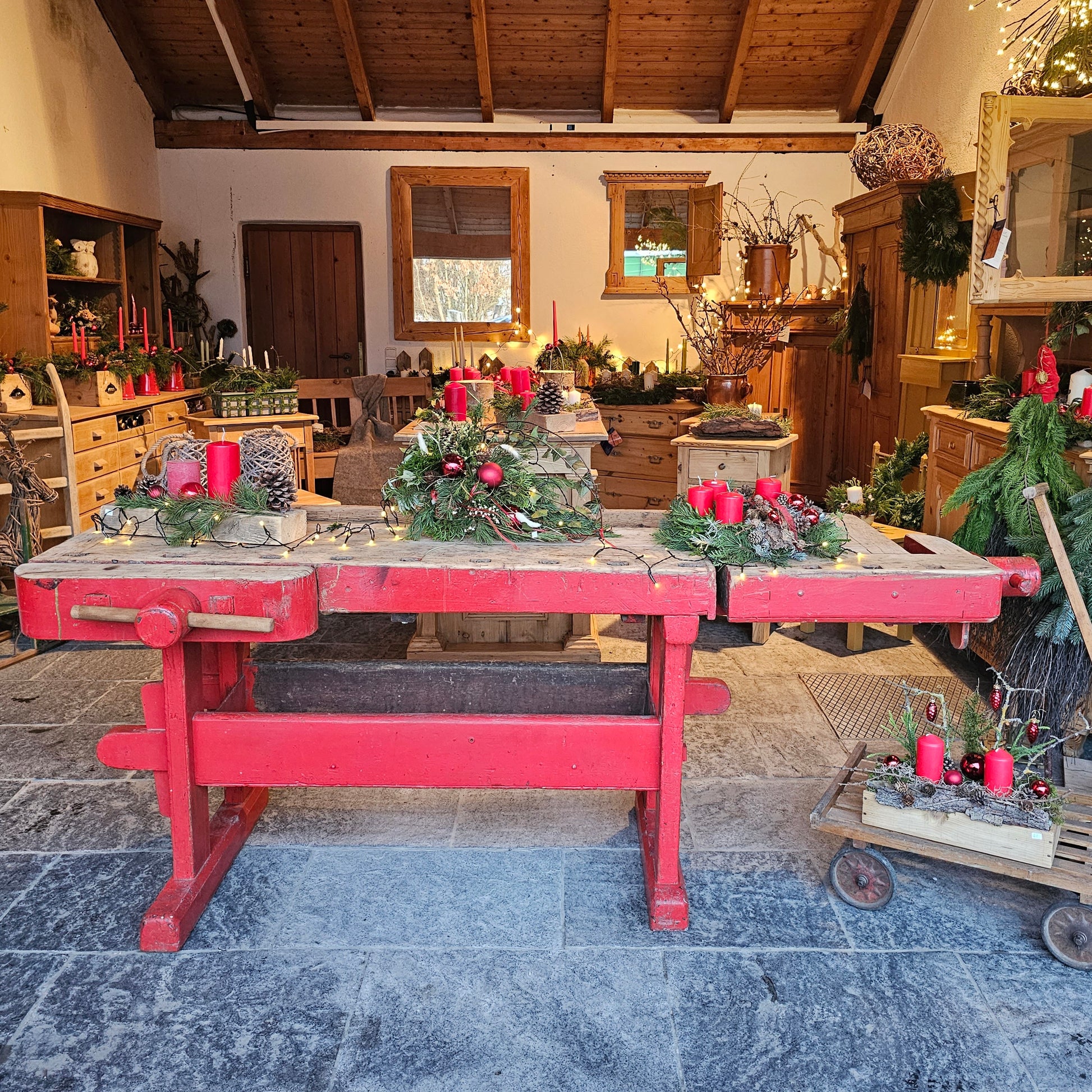 Urig, rustikal und voller Geschichte: Diese Hobelbank mit zwei Schraubstöcken bringt Werkstatt-Charme ins Zuhause – als Konsole, Bartisch, kleiner Schreibtisch oder schlicht als Statement-Piece. Die massige Buche fühlt sich satt und ehrlich an; die Schraubstöcke sind funktional und zugleich wunderschöne Details. Unsere rote Hobelbank - für den besonderen Pep in der Einrichtung, ob als Tisch, Schreibtisch, Konsole, oder schlicht als Hingucker vielseitig einsetzbar. Super zum dekorieren in Ihrem Ladengeschäft, an ihr bleibt jeder Blick hängen.