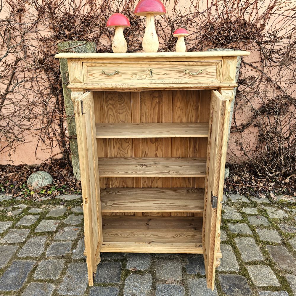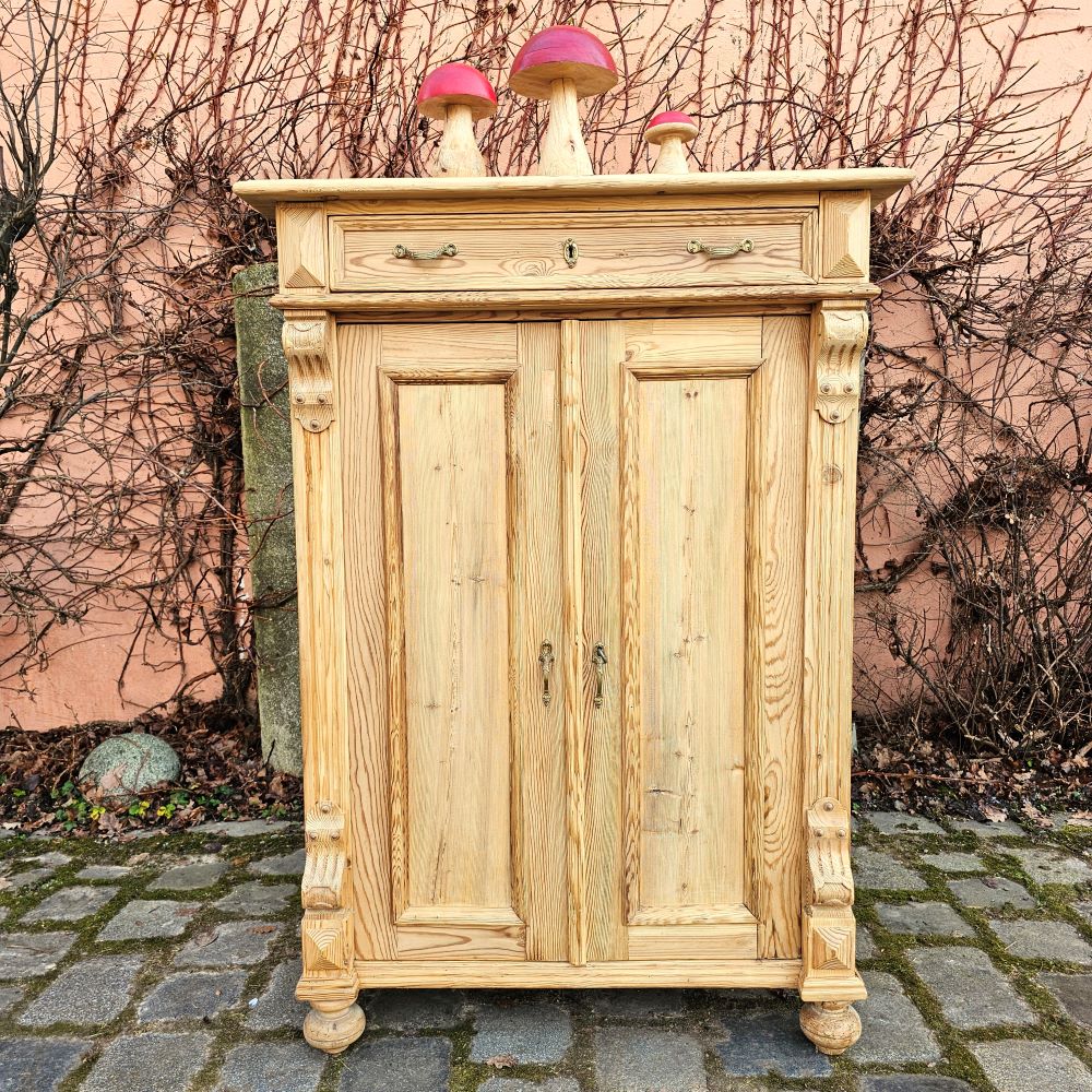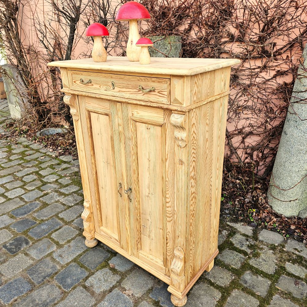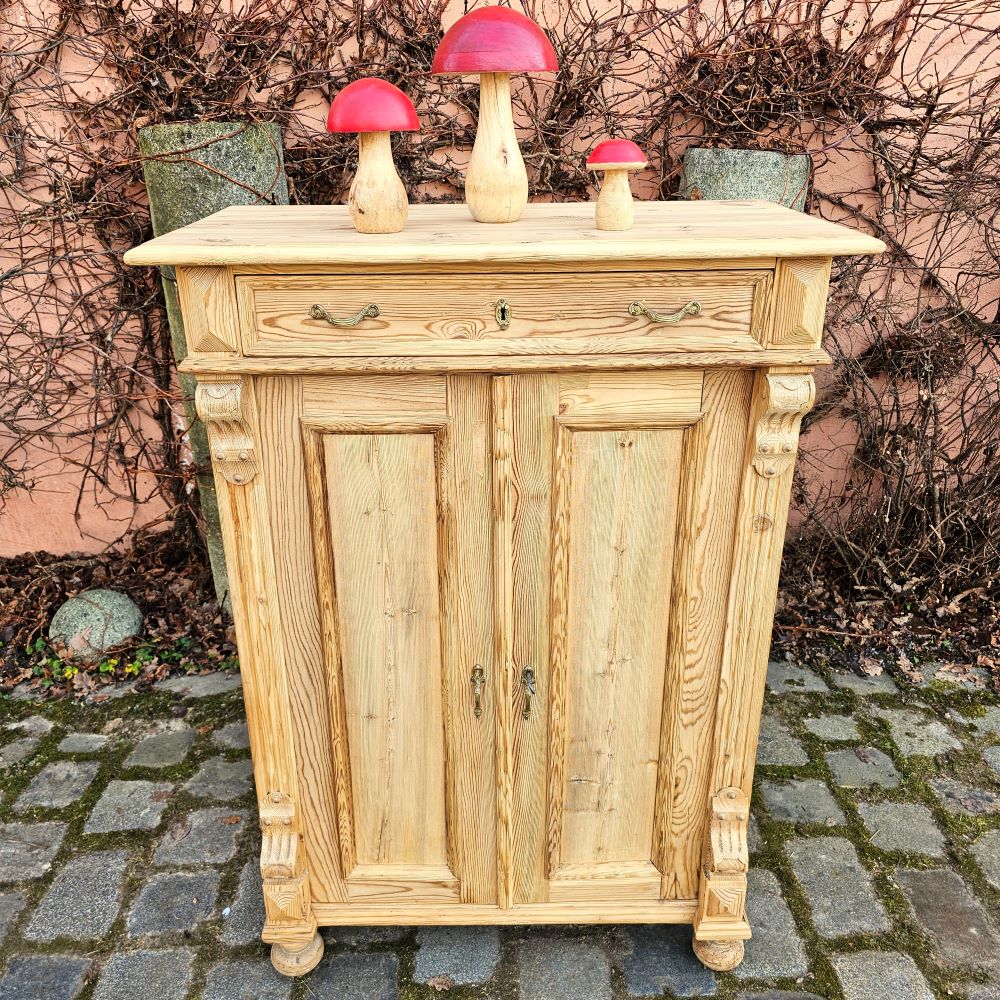 Schmales Vertiko mit wunderschönen Details – von uns behutsam überarbeitet und wohnfertig gemacht. Die schlanke Silhouette benötigt wenig Wandbreite, bietet in der Tiefe jedoch praktischen Stauraum. Feine Zierarbeit und stimmige Proportionen verleihen dem Stück eine ruhige, elegante Präsenz.