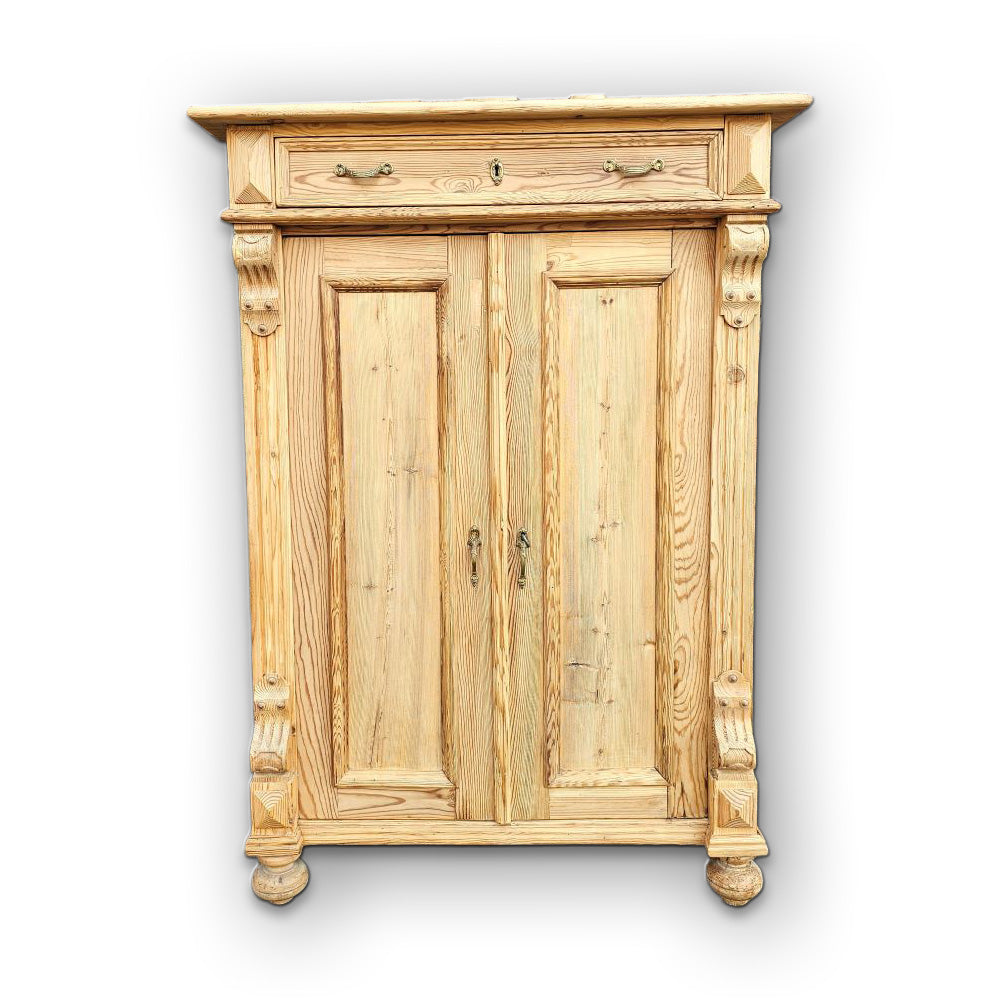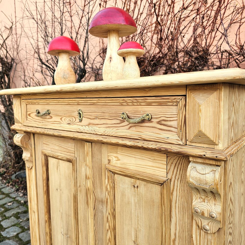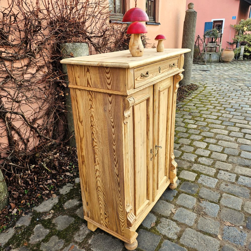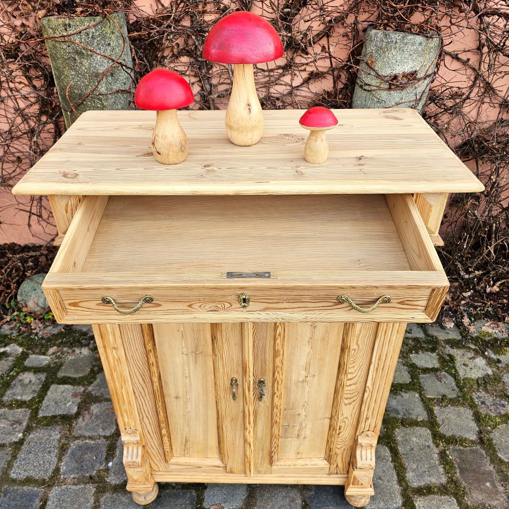 In der Werkstatt wurden Korpus und Beschläge geprüft, Türen justiert und die Oberfläche schonend aufgefrischt. Altersgemäße Spuren bleiben bewusst sichtbar und unterstreichen den authentischen Charakter – alles voll funktional.